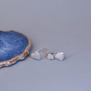 925 Sterling Silver Pave Heart Charms with Cubic Zirconia, Adjustable Bracelet in 2 style. Gift for Her